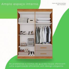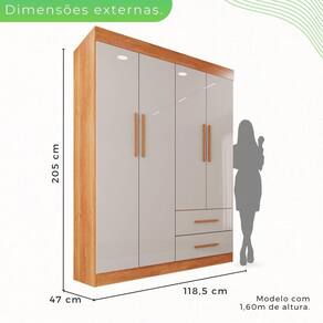 Este lindo Guarda Roupa Verona Premium Sallêto é um produto de excelente qualidade, funcionalidade e beleza, ele é a melhor opção para deixar seu dormitório muito mais arrumado e convidativo. Com corrediças telescópicas que permitem uma abertura total das gavetas, parte interna clean toda branca possibilitando maior clareza, divisões internas amplas que oferecem praticidade e organização, 2 gavetas espaçosas para guardar tudo que precisa e puxadores de madeira que garantem maior durabilidade. Se encaixa facilmente em vários estilos de decoração com cores super atuais. Aproveite, você merece! Acabamento da Prateleira: Pintura UV Escala de Brilho da Prateleira: Fosco Possui Cabideiros: Sim Acabamento da Gaveta: Pintura UV Possui Organizador de Gaveta: Não Acabamento da Porta: Pintura UV Escala de Brilho da Porta: Semi-Brilho Material do Puxador da Porta: MDF Altura do Espelho: cm Ambiente Principal: Quarto Complexidade da Montagem: Média: pode ser montado por mais de uma pessoa e/ou necessite de maior conhecimento para montagem Cor: Cinamomo/Off-White Cor do Produto: Cinamomo/Off-White Escala de Brilho: Semi-Brilho Espessura do Espelho: mm Gaveta com Chave: Não Itens Inclusos: 1 Guarda Roupa, Kit Ferragens e Manual de Montagem Linha ou Coleção: Verona Manual de Montagem e Instalação: https://cdn2.madeiramadeira.com.br/atributo/salleto/1741904-roupeiro-new-verona-4-portas.pdf Material da Gaveta: MDP Material da Porta: MDP Material da Prateleira: MDP Material Principal: MDP modular: Não Necessita Montagem: Sim Origem do Produto: Nacional Peso: 66.5 Peso Máximo por Gaveta: 5 Peso Máximo por Prateleira: 3 Possui Calceiros: Não Possui Espelho: Não Possui Pés: Não Possui Portas: Sim Possui Prateleiras: Sim Quantidade de Gavetas: 02 Gavetas Recomendações de Uso, Manutenção e Limpeza: Limpar com flanela ou pano macio seco. Não utilizar produtos abrasivos. Não expor o produto diretamente à luz solar e à umidade. Sistema de Montagem: Parafusos, Cavilhas , Minifix, Dobradiças e Puxadores. Tipo de Corrediça da Gaveta: Metálica Simples Tipo de Dobradiça/Corrediça da Porta: Metálica Tipo de Gaveta: Externa Tipo de Guarda-Roupa: Solteiro Tipo de Puxador da Gaveta: Externo Tipo de Puxador da Porta: Externo
