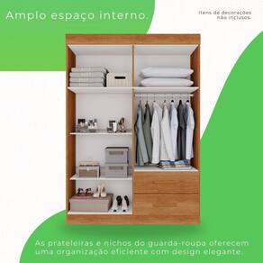 Este lindo Guarda Roupa Verona Premium Sallêto é um produto de excelente qualidade, funcionalidade e beleza, ele é a melhor opção para deixar seu dormitório muito mais arrumado e convidativo. Com corrediças telescópicas que permitem uma abertura total das gavetas, parte interna clean toda branca possibilitando maior clareza, divisões internas amplas que oferecem praticidade e organização, 2 gavetas espaçosas para guardar tudo que precisa e puxadores de madeira que garantem maior durabilidade. Se encaixa facilmente em vários estilos de decoração com cores super atuais. Aproveite, você merece! Acabamento da Prateleira: Pintura UV Escala de Brilho da Prateleira: Fosco Possui Cabideiros: Sim Acabamento da Gaveta: Pintura UV Possui Organizador de Gaveta: Não Acabamento da Porta: Pintura UV Escala de Brilho da Porta: Fosco Material do Puxador da Porta: MDF Altura do Espelho: cm Ambiente Principal: Quarto Complexidade da Montagem: Média: pode ser montado por mais de uma pessoa e/ou necessite de maior conhecimento para montagem Cor: Cinamomo Cor do Produto: Cinamomo Escala de Brilho: Fosco Espessura do Espelho: mm Gaveta com Chave: Não Itens Inclusos: 1 Guarda Roupa, Kit Ferragens e Manual de Montagem Linha ou Coleção: Verona Manual de Montagem e Instalação: https://cdn2.madeiramadeira.com.br/atributo/salleto/1741904-roupeiro-new-verona-4-portas.pdf Material da Gaveta: MDP Material da Porta: MDP Material da Prateleira: MDP Material Principal: MDP modular: Não Necessita Montagem: Sim Origem do Produto: Nacional Peso: 66.5 Peso Máximo por Gaveta: 5 Peso Máximo por Prateleira: 3 Possui Calceiros: Não Possui Espelho: Não Possui Pés: Não Possui Portas: Sim Possui Prateleiras: Sim Quantidade de Gavetas: 02 Gavetas Recomendações de Uso, Manutenção e Limpeza: Limpar com flanela ou pano macio seco. Não utilizar produtos abrasivos. Não expor o produto diretamente à luz solar e à umidade. Sistema de Montagem: Parafusos, Cavilhas , Minifix, Dobradiças e Puxadores. Tipo de Corrediça da Gaveta: Metálica Simples Tipo de Dobradiça/Corrediça da Porta: Metálica Tipo de Gaveta: Externa Tipo de Guarda-Roupa: Solteiro Tipo de Puxador da Gaveta: Externo Tipo de Puxador da Porta: Externo