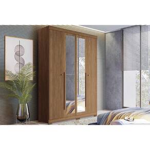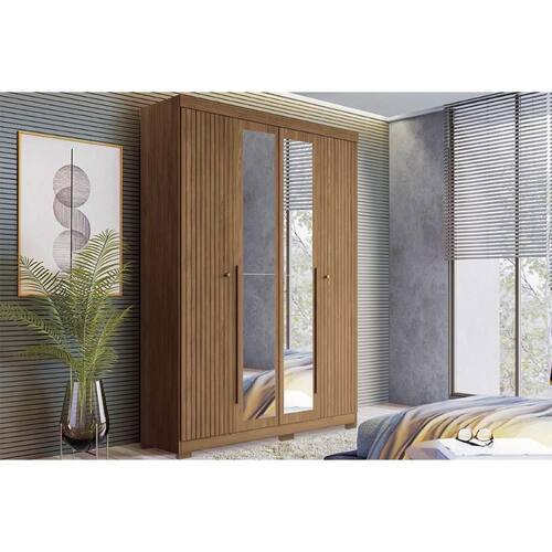 Guarda Roupa Solteiro 4 Portas (2 Ripadas e 2 c/ Espelho) e 2 Gavetas c/ Pés Buriti Jatobá - Santos Andirá - Blush