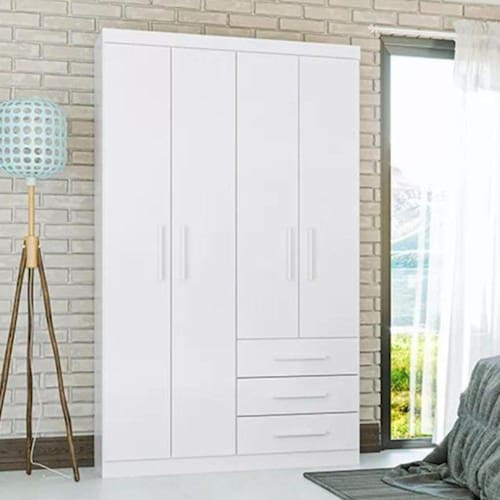 Com um acabamento mais refinado os guarda-roupas da Batrol Móveis possuem um material que permite que as peças tenham encaixes mais suaves, o que resulta em um design mais interessante e sofisticado. Fabricados com MDP, possuem chapas homogêneas, resistentes e fáceis de montar. Acabamento da Prateleira: Pintura Escala de Brilho da Prateleira: Fosco Possui Cabideiros: 02 Acabamento da Gaveta: Pintura Escala de Brilho da Gaveta: Fosco Material do Puxador da Gaveta: MDF Possui Organizador de Gaveta: Não Acabamento da Porta: Pintura Escala de Brilho da Porta: Fosco Material do Puxador da Porta: MDF Ambiente Principal: Quarto Complexidade da Montagem: Média: pode ser montado por mais de uma pessoa e/ou necessite de maior conhecimento para montagem Cor: Branco Cor do Produto: Branco Cor Flex: Não Cor Interna: Branco Escala de Brilho: Semi-Brilho Gaveta com Chave: Não Itens Inclusos: 1 Guarda Roupa, Kit Ferragens e Manual de Montagem Linha ou Coleção: Advantage Manual de Montagem e Instalação: https://cdn2.madeiramadeira.com.br/atributo/batrol-moveis/1142881-202211290813051209rev01.pdf Material da Gaveta: MDP Material da Porta: MDP Material da Prateleira: MDP Material Principal: MDP Montagem Flex: Não Necessita Montagem: Sim Origem do Produto: Nacional Peso: 76.09999999999999 Peso Máximo por Gaveta: 5 Peso Máximo por Prateleira: 5 Possui Calceiros: Não Possui Espelho: Não Possui Pés: Não Possui Portas: 04 Possui Prateleiras: 03 Recomendações de Uso, Manutenção e Limpeza: Pano úmido Sistema de Montagem: Cavilhas Tipo de Corrediça da Gaveta: Metálica Simples Tipo de Dobradiça/Corrediça da Porta: Metálica Tipo de Gaveta: Externa Tipo de Guarda-Roupa: Solteiro Tipo de Puxador da Gaveta: Externo Tipo de Puxador da Porta: Externo