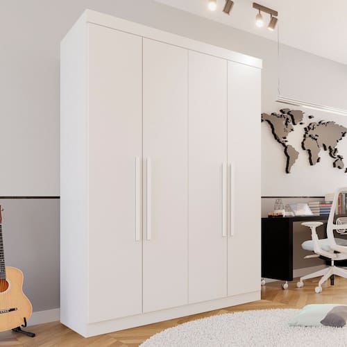 O Guarda-roupa Roma oferece durabilidade com sua chapa de 15mm, garantindo robustez e longa vida útil. Com 4 portas, 5 prateleiras e 3 gavetas com corrediças telescópicas, além de um cabideiro em alumínio, pés inclusos e puxadores na cor, proporciona praticidade e organização ao seu espaço, tudo isso com um excelente custo-benefício. Acabamento da Prateleira: Pintura UV Escala de Brilho da Prateleira: Semi-Brilho Possui Cabideiros: Sim Acabamento da Gaveta: Pintura UV Escala de Brilho da Gaveta: Semi-Brilho Material do Puxador da Gaveta: MDF Possui Organizador de Gaveta: Não Acabamento da Porta: Pintura UV Escala de Brilho da Porta: Semi-Brilho Material do Puxador da Porta: MDF Altura dos Pés: 7 cm Altura Máxima dos Pés: 7.0000 Ambiente Principal: Quarto Complexidade da Montagem: Média: pode ser montado por mais de uma pessoa e/ou necessite de maior conhecimento para montagem Cor: Branco Cor do Produto: Branco Escala de Brilho: Fosco Gaveta com Chave: Não Informações Complementares: Todo em Chapa de 15mm. Itens Inclusos: 1 Guarda Roupa, Kit Ferragens e Manual de Montagem Linha ou Coleção: Roma Manual de Montagem e Instalação: https://product-hub-prd.madeiramadeira.com.br/919266/documents/939acac9-9412-473e-ab3a-1d24b815c80d2095572524617195072368787.pdf Material da Gaveta: MDP Material da Porta: MDP Material da Prateleira: MDP Material dos Pés: PVC Material Principal: MDP modular: Não Montagem Flex: Não Necessita Montagem: Sim Origem do Produto: Nacional Peso: 97 kg Peso Máximo por Gaveta: 5 kg Peso Máximo por Prateleira: 10 kg Possui Calceiros: Não Possui Espaço para Vestidos Longos: Sim Possui Espelho: Não Possui Pés: 06 Possui Portas: Sim Possui Prateleiras: Sim Possui Sapateira: Sim Produto Montado: Sim Recomendações de Uso, Manutenção e Limpeza: Limpeza com Pano Seco Sistema de Montagem: Parafuso e Cavilha Suporta Até (kg): 70 kg Tipo de Corrediça da Gaveta: Metálica Telescópica Tipo de Dobradiça/Corrediça da Porta: Metálica Tipo de Gaveta: Interna Tipo de Guarda-Roupa: Solteiro Tipo de Puxador da Gaveta: Não Possui Tipo de Puxador da Porta: Externo