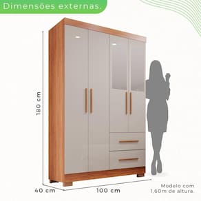 Organize e encontre com mais facilidade suas roupas preferidas! Com o Guarda Roupa Estrela você terá a praticidade de organizar suas coisas do seu jeito. Confeccionado com materiais de qualidade ele é a opção mais acertada para deixar seu dormitório muito mais arrumado. Você não precisa mais procurar, você acaba de encontrar o móvel perfeito para o seu dormitório pensando em como acabar com a desordem e aproveitar todo espaço para guardar roupas, acessórios e o que mais você desejar, ele é a opção perfeita para completar sua casa. Aproveite! Acabamento da Prateleira: Pintura UV Escala de Brilho da Prateleira: Fosco Possui Cabideiros: Sim Acabamento da Gaveta: Pintura UV Possui Organizador de Gaveta: Não Acabamento da Porta: Pintura UV Escala de Brilho da Porta: Semi-Brilho Material do Puxador da Porta: MDF Altura do Espelho: 50 cm Altura dos Pés: 5 Altura Máxima dos Pés: 5.0000 Ambiente Principal: Quarto codigo_ean: 7899931146870 Complexidade da Montagem: Média: pode ser montado por mais de uma pessoa e/ou necessite de maior conhecimento para montagem Cor: Cinamomo/Off-White Cor do Produto: Cinamomo/Off-White Escala de Brilho: Semi-Brilho Espessura do Espelho: 3 mm Formato do Espelho: Retangular Gaveta com Chave: Não Itens Inclusos: 1 Guarda Roupa, Kit Ferragens e Manual de Montagem Largura do Espelho: 17 cm Linha ou Coleção: ESTRELA PREMIUM Manual de Montagem e Instalação: https://product-hub-prd.madeiramadeira.com.br/889199/documents/8c3c31e7-d4b0-4bde-a420-7bce43b8e1e7peiroestrela4portassalleto.pdf Material da Gaveta: MDP Material da Porta: MDP Material da Prateleira: MDP Material dos Pés: Polipropileno Material Principal: MDP modular: Não Necessita Montagem: Sim Origem do Produto: Nacional Peso: 45,5 kg Peso Máximo por Gaveta: 5 kg Peso Máximo por Prateleira: 3 kg Possui Calceiros: Não Possui Espelho: Sim Possui Pés: 06 Possui Portas: Sim Possui Prateleiras: Sim Produto Montado: Sim Quantidade de Espelho: 02 Espelhos com Tamanhos Iguais Quantidade de Gavetas: 02 Gavetas Recomendações de Uso, Manutenção e Limpeza: Limpar com flanela ou pano macio seco. Não utilizar produtos abrasivos. Não expor o produto diretamente à luz solar e à umidade. Sistema de Montagem: Parafusos, Cavilhas , Minifix, Dobradiças e Puxadores. Tipo de Corrediça da Gaveta: Metálica Simples Tipo de Dobradiça/Corrediça da Porta: Metálica Tipo de Fixação do Espelho: Parafusos Tipo de Gaveta: Externa Tipo de Guarda-Roupa: Solteiro Tipo de Puxador da Gaveta: Externo Tipo de Puxador da Porta: Externo