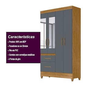 Guarda Roupa Solteiro 4 Portas Com Espelho 2 Gavetas Madri - Freijo / Cinza Freijo / Cinza