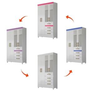 Guarda Roupa Solteiro 4 portas com espelho 4 gavetas Branco / Rosa / Azul / Lilas Flex Sobral