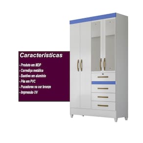 O Guarda Roupa Sobral vai deixar seu quarto mais agradável, um produto que reúne modernidade e praticidade com tamanho compacto, mas com excelente distribuição interna, ele agrega organização e design e qualidade ao seu quarto. O cabideiro é em alumínio, as corrediças metálicas e a pintura é em impressão UV Relevo Fosco.