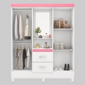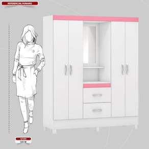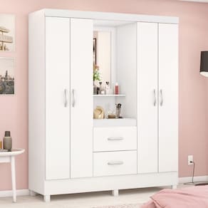 Com quatro portas e duas gavetas espaçosas, oferece amplo armazenamento para roupas, acessórios e objetos pessoais.