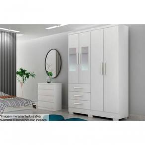 Espaço amplo: O guarda roupa possui 4 portas de bater e 3 gavetas com corrediças telescópicas, oferecendo amplo espaço para guardar roupas, calçados, acessórios e outros pertences.