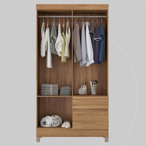Com quatro portas e duas gavetas espaçosas, oferece amplo armazenamento para roupas, acessórios e objetos pessoais.