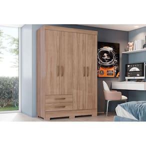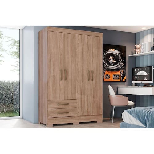 Guarda Roupa Solteiro 4 Portas e 2 Gavetas Briz BE12 Jequitibá Brilho - Henn
