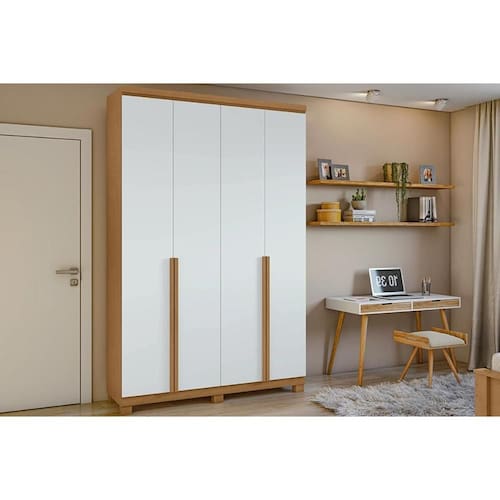 Guarda Roupa Solteiro 4 Portas e 2 Gavetas c/ Pés Alonzo Amêndoa/Branco - Lopas - Blush