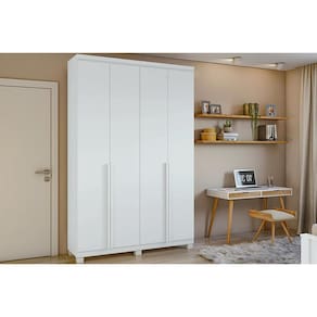Guarda Roupa Solteiro 4 Portas e 2 Gavetas c/ Pés Alonzo Branco - Lopas
