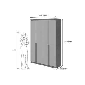 Dimensões(Cm): Comprimento(Profundidade): 47cm x Largura: 154cm x Altura: 230cm