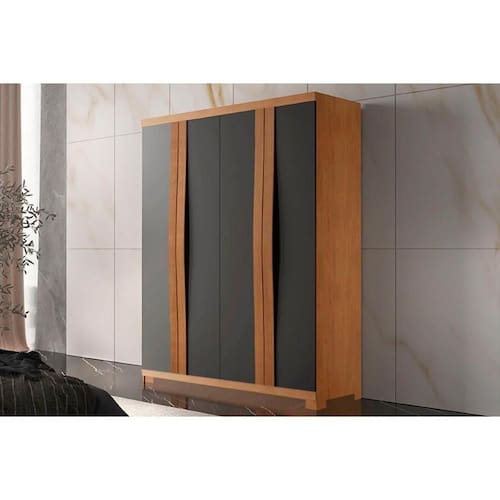 Guarda Roupa Solteiro 4 Portas e 2 Gavetas c/ Pés Grécia /Grafite - Rufato