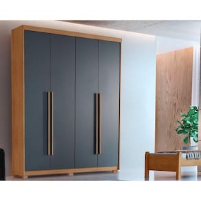 Guarda Roupa Solteiro 4 Portas e 2 Gavetas c/ Pés Hawaii Naturale/Grafite - Rufato