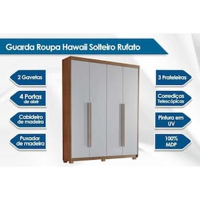 Guarda Roupa Solteiro 4 Portas E 2 Gavetas C/ Pés Hawaii Naturale/grafite - Rufato