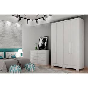 Guarda Roupa Solteiro 4 Portas e 2 Gavetas c/Pés Milly Branco - Novo Horizonte