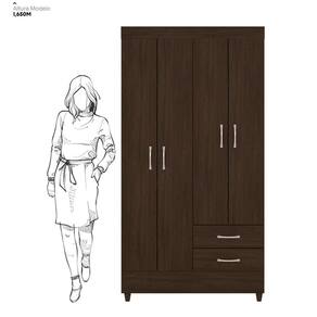 Com quatro portas e duas gavetas espaçosas, oferece amplo armazenamento para roupas, acessórios e objetos pessoais.