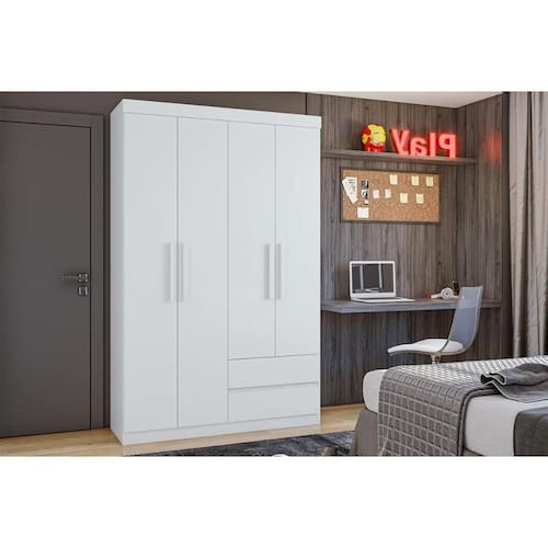Guarda Roupa Solteiro 4 Portas e 2 Gavetas Zeus Branco - Lopas