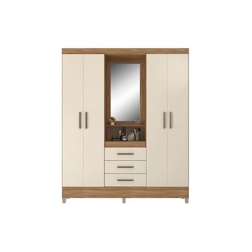 Guarda Roupa Solteiro 4 Portas e 3 Gavetas c/ 1 Espelho Capelinha Persia Amendola/Off White - Demóbile