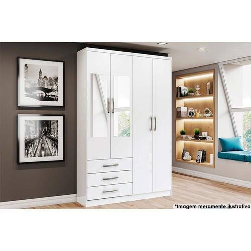 Guarda Roupa Solteiro 4 portas e 3 Gavetas c/ Espelho Caju DA135 Branco - Henn