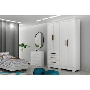 Guarda Roupa Solteiro 4 Portas e 3 Gavetas c/Pés Encant Branco - Novo Horizonte