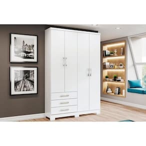 Guarda Roupa Solteiro 4 portas e 3 Gavetas Caju DA135 Branco - Henn