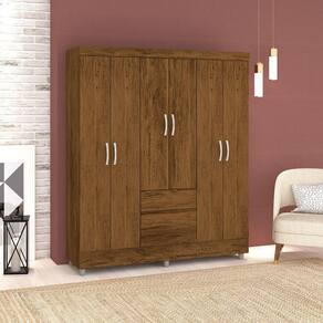 Guarda Roupa Solteiro 6 Portas 153 Cm Rio Plus Imbuia/champanhe - Pallazio
