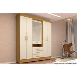 Guarda Roupa Solteiro 6 Portas (2 c/ Espelho) e 3 Gavetas Débora Cinamomo/Off White - ACP