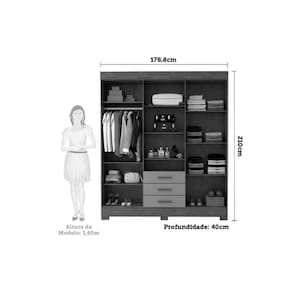 Dimensões(Cm): Comprimento(Profundidade): 40cm x Largura: 178,8cm x Altura: 210cm