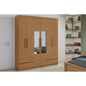 Guarda Roupa Solteiro 6 Portas (2 c/ Espelho) e 4 GavetasZeus Amêndoa - Lopas