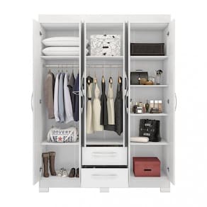 Características: Estrutura em MDP Pintura U.V 6 Portas 2 Gavetas 4 Prateleiras Nicho Cabideiro Pés de plástico Puxador de PVC Corrediça metálica