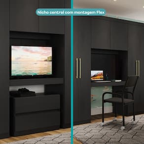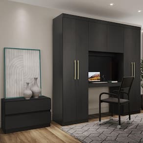 O Guarda-Roupa Porto 837, com suas 6 portas e design flexível, se adapta perfeitamente às suas necessidades. Feito com MDP de 15 mm e robustas dobradiças de 26 mm, garante durabilidade e segurança. Organize-se com seus 5 prateleiras e 6 nichos espaçosos, suportando até 6 kg cada. Seu diferencial está na montagem personalizável: transforme-o em um elegante painel de TV, uma prática mesa de escrivaninha ou até mesmo uma charmosa cabeceira de cama. Com rodapé para estabilidade, puxadores em ABS e um gaveteiro solto para maior versatilidade, este guarda-roupa combina estilo e funcionalidade em um único produto.