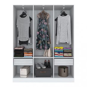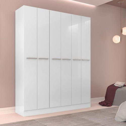 Características: Estrutura em MDP de 12mm 6 Portas 6 Nichos 3 Cabideiros em madeira 2 Gavetas com capacidade de até 3kg Corrediças metálicas Puxadores de Plásticos Acabamento interno na tonalidade ártico
