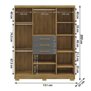 Material: MDP | Cor: Imbuia/Champanhe | Cômodo Indicado: Quarto | Dimensões do Produto (A X L X P): 2,05 x 1,51 x 0,47 | Possui Prateleira: Sim | Possui portas: Sim | Quantidade de portas: 6 Portas | Tipo de Porta: Giro | Possui Gavetas: Sim | Quantidade de Gavetas: 3 | Tipo de Corrediça da Gaveta: Metálica | Possui Espelho: Não | Quantidade de Espelhos: 0 | Possui pés: Sim | Peso do Produto (Kg): 96.5 | Altura do Produto (cm): 205 | Largura do Produto (cm): 151 | Comprimento do Produto (cm): 47 | Nome do Simples no Fornecedor: Guarda Roupa Taurus | do Fabricante: 90 dias | Instruções/Cuidados: Evite contato com líquidos. Nada de lavar os móveis. Móveis não gostam de umidade. Não deixe o móvel exposto ao sol. Os acessórios também precisam de limpeza. | Produto precisa de Montagem?: Sim, a montagem é simples mas sugerimos a contratação de algum experiente de sua preferência | Material para Filtro: MDP | Material da Estrutura: MDP | Necessita Fixação na Parede: Não | Conteúdo Embalagem: Guarda Roupa Solteiro 6 Portas 3 Gavetas Taurus | Origem: Nacional | Estado de Origem: Paraná | Quantidade de Volumes: 2 | Peso (volume 01): 55,5 Kg | Comprimento x Largura x Altura (volume 01): 2,06 x 0,47 x 0,12 | Peso (volume 02): 41 Kg | Comprimento x Largura x Altura (volume 02): 1,89 x 0,47 x 0,09 Cor: Nature/Alasca