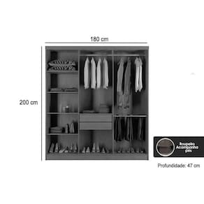 Dimensões(Cm): Comprimento(Profundidade): 180cm x Largura: 47cm x Altura: 200cm
