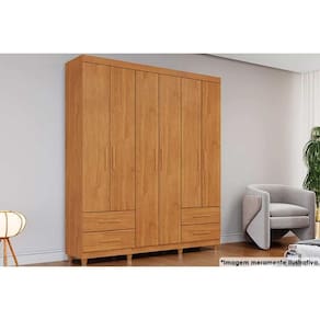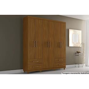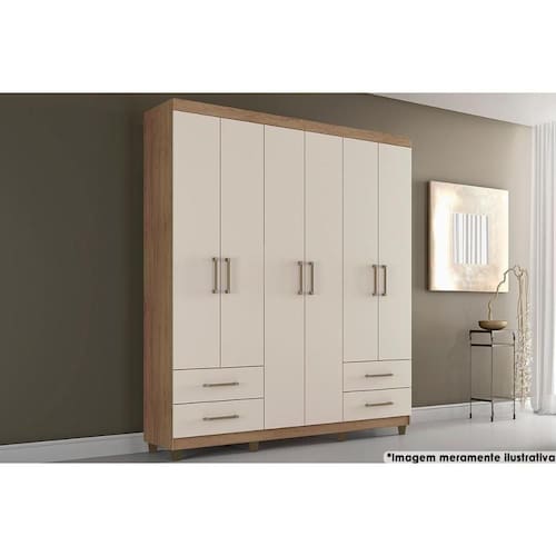 Material dos Cabideiros - Cabideiro de Madeira Material das Portas - Portas em MDF/MDP Quantidade de Portas - 6 Portas de Abrir Tipo de Espelho - Sem Espelho Material das Gavetas - Gavetas em MDF/MDP Tipo de Corrediça - c/ Corrediças Telescópicas Quantidade de Gavetas - 4 Gavetas Quantidade de Prateleiras - 6