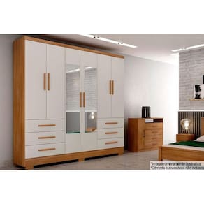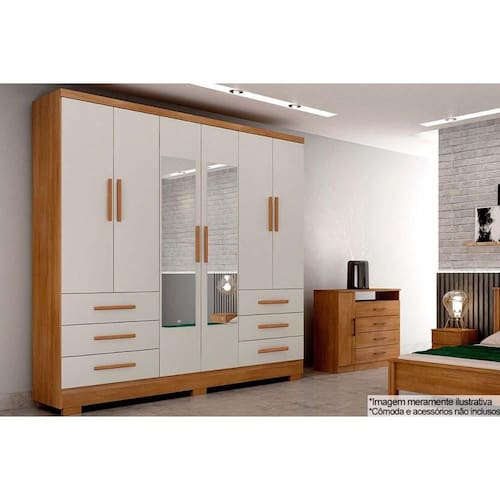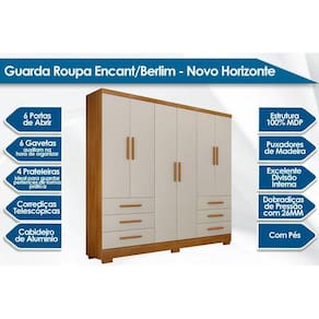 Guarda Roupa Solteiro 6 Portas e 6 Gavetas c/Espelho e Pés Encant/Berlim Cumaru/Fendi - Novo Horizonte