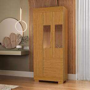 Guarda-roupa Solteiro 75,30cm 3 Ptas com Esp e 2 Gavetas Chantrieri Espresso Móveis Cinamomo - Marrom