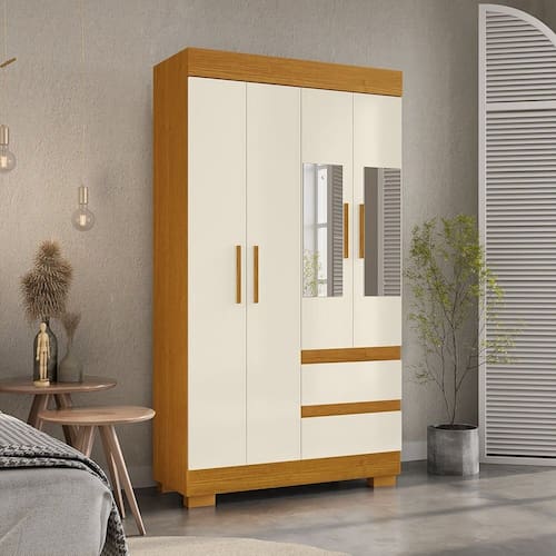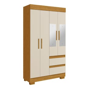 Guarda-roupa Solteiro 99,80cm 4 Portas com Espelho e 2 Gavetas Chantrieri Espresso Móveis Cinamomo/Off White