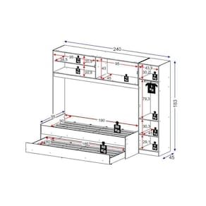 Dimensões(Cm): Comprimento(Profundidade): 95cm x Largura: 240cm x Altura: 183cm