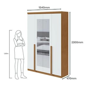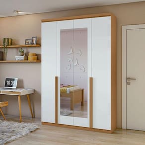 Guarda Roupa Solteiro Alonzo 4 Portas Amêndoa Clean Branco com Espelho - Lopas