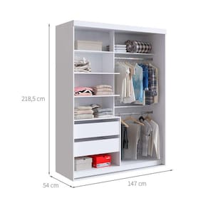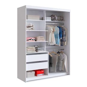 que tal o guarda-roupa alya?organização é essencial para uma rotina mais prática e completa, por isso o guarda-roupa alya é uma ótima aquisição para quem procura por pde no dormitório. por dentro, ele tem compartimentos para peças que vão penduradas em cabides ou dobradas nas gavetas, sapatos, bolsas e malas, e até roupas de camas, enquanto a parte externa carrega um charme clássico graças à estrutura robusta + coloração leve. esse combo de vantagens é coroado pelas portas de correr, que oferecem um hor aproveitamento do espaço do quarto - daí é só harmonizar com o restante da mobília e aproveitar muito o seu cantinho de descanso ;) Marca: Modern