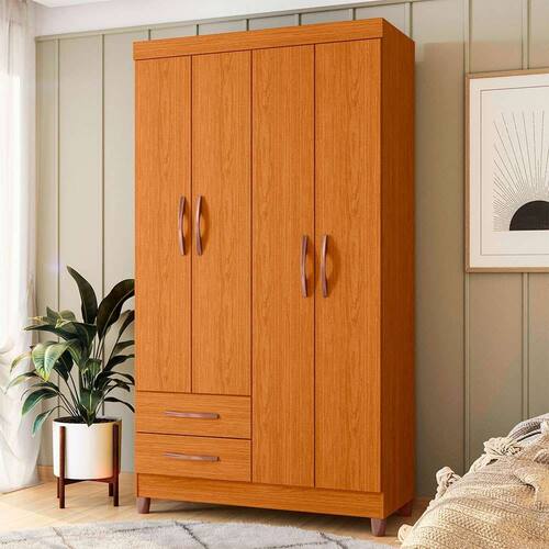 que tal o guarda-roupa Âmbar?quem não gosta de ter as roupas e sapatos organizados de forma perfeita e sempre ao alcance quando precisar? com bastante espaço para acomodar as coisas do casal, o guarda-roupa Âmbar tem maleiro, compartimentos para peças longas e para calças, além de 2 gavetas e cabideiro de alumínio. a parte externa também não deixa a desejar: ele tem puxadores alongados e ainda conta com uma coloração harmônica que combina bem com vários estilos de decoração, o que facilita muito na hora de criar um cômodo bonito de verdade. completo, né? ele é uma peça coringa para a sua casa ;) Marca: Modern