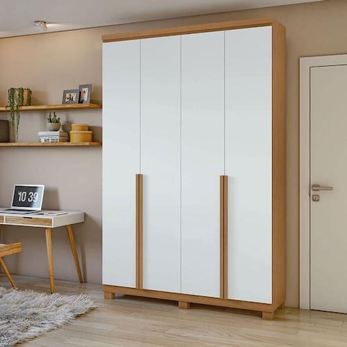 Guarda Roupa Solteiro Alonzo 4 Portas Amêndoa Clean Branco com Pés - Lopas