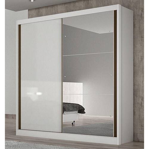 Guarda Roupa Solteiro Dante 2 Portas Neve com Espelho Horizonte
