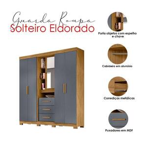 Guarda Roupa Solteiro Ambiente Eldorado 5 Portas Freijó Cinza com Espelho - Moval