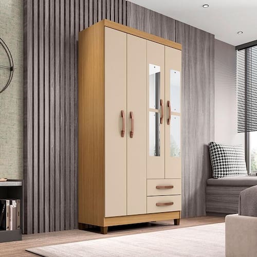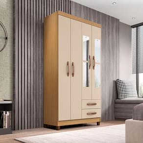 Guarda Roupa Solteiro Ambiente Modena com Espelho 4 Portas Carvalho Americano Off White - Incorplac