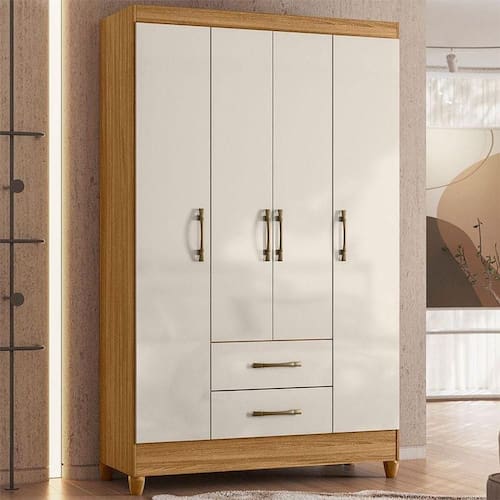 Guarda Roupa Solteiro Ambiente Paraty 4 Portas Freijó Off White - Moval