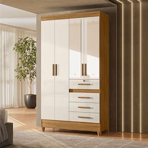 Guarda Roupa Solteiro Ambiente Sobral 4 Portas Freijó Off White com Espelho - Moval