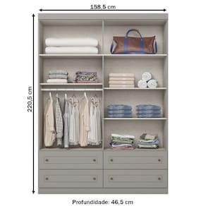 O(a) Guarda-Roupa Solteiro Americano 4 Portas 4 Gavetas Cinza - Henn é produzido em MDF e MDP na escala de brilho Brilho, e possui um grau de dificuldade de montagem: Médio.